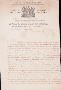 Ces sentiments auxquels vous avez forcé vos compatriotes vous imposent des devoirs, je viens vous demander de les remplir, persuadé que vous y trouverez une récompense douce et flatteuse. Servez-vous donc, citoyen, des moyens avantageux qui naissent de l’estime que vous avez inspirée pour ramener au bon ordre, à la tranquillité, au renoncement de toute vengeance, les habitants de votre canton : en leur parlant le langage de la douceur, de la persuasion, faites-leur envisager les mesures rigoureuses qu’on serait forcé d’employer s’ils restaient sourds à votre voix.