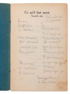 Texte autographe de Georges Brassens au crayon d'un projet de chanson (24 lignes) sur le faux titre du livre d'Henri Guillot Ce qu'il faut savoir... «Le cocu soufflota le vaincu... un roussin qui passait voulut s'interposer... et tout ça oui tout ça dans les seins de Margot qui d'ailleurs étaient plats ils pendaient jusqu'au pied.»