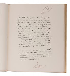 5 pages in-8 contrecollées sur des feuillets in-4 au format du manuscrit comportant des corrections de la main de René Char.