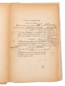 En plus des corrections de l'auteur, de très nombreuses indications manuscrites de mise en page figurent dans ce jeu d'épreuves à la mine de plomb et à l'encre bleue.