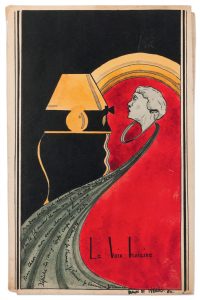 Le dessin qui figure sur le premier plat titré et signé à l'encre noire représente une tête de femme de profil la larme à l'oeil qui parle au téléphone.
