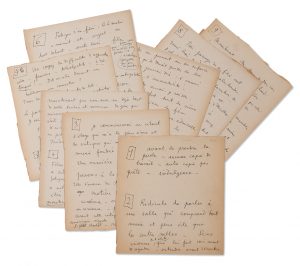 Notes préparatoires à l'encre de Jean Cocteau sur les affres de la création avant la projection de son film le Sang d'un poète au Vieux Colombier le 20 janvier 1932.