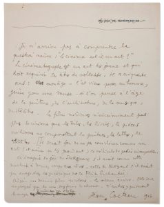 COCTEAU JEAN (1889-1963). Le cinéma est-il est art? Manuscrit autographe signé, 1946, une page in-4 à l'encre.