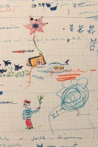 PRÉVERT JACQUES (1900-1977). Le Soleil a toujours raison. Planches autographes préparatoires du scénario avec dessins originaux de Jacques Prévert. 1943. Deux feuillets in-folio.