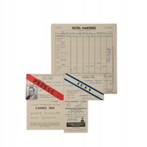 Le texte tout compte fait... dont le manuscrit autographe figure ici revient, douze ans après, sur cette expérience: «lorsque j'étais juré, je n'ai pas trouvé que c'était la foire (ou si peu), mais bien une foire où on trafique comme dans les foires. Comme à Lyon, à Milan, c'est fait pour ça: le commerce que qu'ça marche. Et puis il y a aussi l'art. Orson Welles a eu le Prix. Il y a tout de même de quoi être fier.