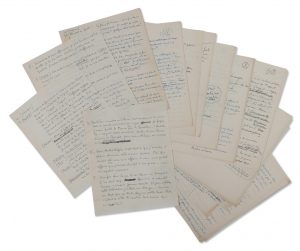 Le tapuscrit constitue également un formidable document, dans la marge de droite au regard de la description de l'action, l'écrivain a collé des béquets manuscrits comportant tous les dialogues.