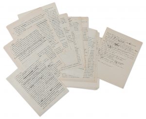 Queneau, comme le montre ce tapuscrit corrigé, a modifié des scènes, inséré des pages manuscrites de dialogues.
