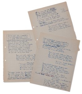 VIAN BORIS (1920-1959). Fais-moi mal Johnny. Manuscrit autographe du texte de la chanson et tapuscrit corrigé [1955]. Manuscrit complet avec ratures et corrections du texte de la chanson de Boris Vian et d'Alain Goraguer. 3 pages in-4.
