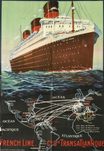 Albert SÉBILLE - C[ompagn]ie G[énéra]le Transatlantique. French line. Saint-Ouen, Impr. Buttner Thierry, [vers 1930]. Affiche lithographiée en couleurs, 89 x 61 cm (traces de plis, accrocs dans la marge en bas à gauche).