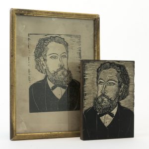 Raoul DUFY - Bois gravé. Matrice originale exécutée par Raoul Dufy pour le bois inséré dans la Revue Musicale n°6 d’avril 1922 représentant le compositeur Modeste Mousorgski.