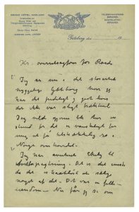 Edvard MUNCH - Lettre autographe signée adressée à son avocat Jos [Johannes] Rœde. Göteborg, s.d. 3 pp. in-8, en-tête imprimé du Grand Hôtel Haglund.