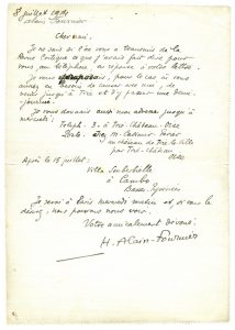 ► Importante lettre écrite juste avant sa mobilisation et comportant les dernières adresses connues d’Alain-Fournier.