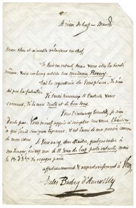 Jules BARBEY d’AUREVILLY - Lettre autographe signée « Jules Barbey d’Aurevilly » adressée à André Basset. « Saint-Jean de Luz, mardi » [septembre 1857]. 1 page in-8. Manque dans le coin supérieur droit.