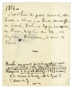 Les notes sont divisées en deux paragraphes, le premier dresse le tableau de la situation politique en Europe livrée aux « petits hommes, absolutistes ou libéraux », dont la France, à « Napoléon dit III » -