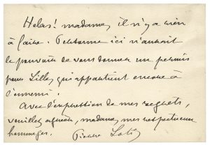 Pierre LOTI - Ensemble de 3 pièces. Carte autographe signée. S.l.n.d.