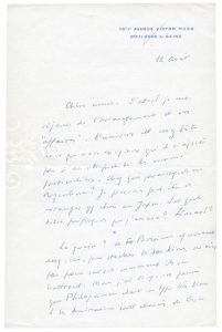 La guerre ? les Fr[ançais] Parisiens y croient assez, ici, pour stocker les sardines, mais pas pour savoir comment ils se battront. Mais j’ai toujours pensé que Philopœmen était un type très bien ; si les Américains sont chassés de Corée le risque deviendra sérieux. Comme c’est curieux de venir sur une planète justement pour la voir mettre en morceaux !