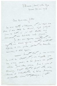 « Me voici rentré à Villeneuve, et j’ai repris ma place à ma table de travail, après quelques jours de lit, où j’ai dû traiter assez sérieusement une bronchite mal soignée… »