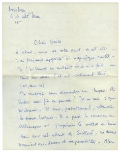 « D’abord, merci de votre carte de cet été – j’ai beaucoup apprécié ce magnifique castel – Je l’ai trouvé en rentrant et ça m’a fait un coup au cœur (il est vachement laid, c’est pour ça).