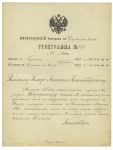 ALEXANDRE II (Александр II Николаевич), Empereur de Russie. ► Rare ensemble de neuf télégrammes adressés à son fils. 1875/1879, texte en russe ou en français. - 1876 (de Petersburg à Naples) :