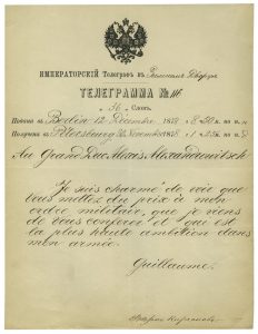 GUILLAUME Ier, Roi de Prusse - Télégramme adressé au Grand-Duc Alexis Alexandrovitch. Berlin, 30 novembre 1878, en français.