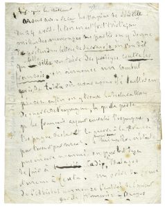 « Nous avons reçu les papiers de Séville du 24 avril. Le ton en est fort triste, au milieu des mensonges des partis, on y donne de prétendus lettres de Savary [Anne Jean Marie René Savary, duc de Rovigo, se verra confié le commandement des troupes françaises jusqu’à l’arrivée de Joseph Bonaparte, nouveau roi d’Espagne, le 20 juillet 1808] où l’on dit que cette ville va faire des prodiges contre les français on annonce un combat qui se tiendra où nous avons été taillés en pièces enfin on y trouve la déclaration de guerre de l’Espagne laquelle porte que les français ayant envahi l’Espagne, l’Espagne déclare la guerre à la France par terre et par mer.