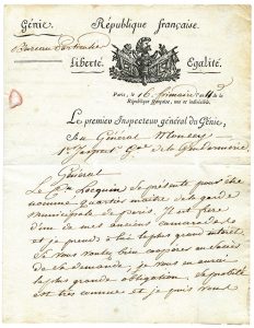Armand de MARESCOT, Général de la Révolution et d’Empire. Lettre autographe signée au Général Moncey « Premier inspecteur Général de la Gendarmerie ». Paris, 16 frimaire An XI [7 décembre 1802]. 1 page ½ in-4, vignette, adresse au...