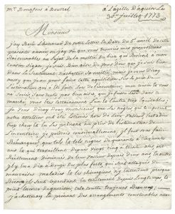 ESCLAVAGE - Lettre signée adressée à Mr. Bonafous à Bourrel. À l'Azille D'aquin (Saint-Domingue) , 30 juillet 1773. 4 pp. in-4 d'une écriture dense.