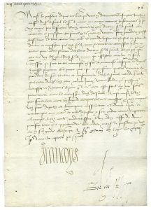 Le Roi demande de hâter l’affaire du « seigneur de Merdilly homme darmes en la compagnie de [son] cousin le conte de Dampmartin lequel jay ordonné aller en quelquepart pour monservice avecques ledit conte son capitaine… »