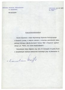 JEAN-PAUL II (Karol Józef Wojtyła) - Invitation signée. Kraków (Cracovie), 21 novembre 1977. ½ p. in-4 à en-tête de l’Université théologique Pontificale de Cracovie.