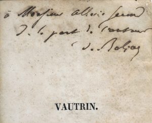 Honoré de BALZAC - Vautrin. Drame en cinq actes, en prose, représenté sur le théâtre de la Porte-Saint-Martin le 14 mars 1840. Paris, Delloye Tresse, 1840. Troisième édition en partie originale. In-8, reliure demi-veau havane, dos lisse...