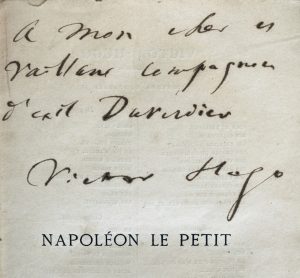 • Victor Hugo « À mon cher et vaillant compagnon d’exil Duverdier ».