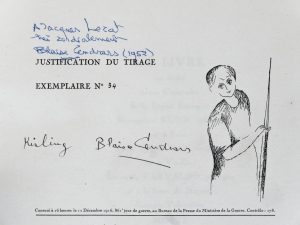 ♦ Un des 44 exemplaires sur papier d’Arches à la cuve (2e papier après 6 vieux Chine), n° 34 signé par Moïse Kisling (1891-1953) et Blaise Cendrars.