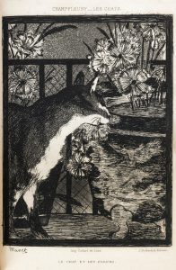 ♦ La deuxième planche est une eau-forte originale d’Édouard Manet, « Le chat et les fleurs ».