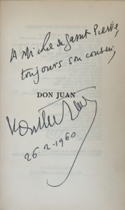 Henry de MONTHERLANT - Don Juan. Pièce en trois actes. Paris, Gallimard, 1958. In-12, reliure demi-chagrin noir à coins, dos à 4 nerfs, auteur, titre et date dorés.