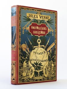 Jules VERNE - Vingt mille lieues sous les mers. Illustré de 111 dessins par de Neuville et Riou gravés par Hildibrand. Paris, Bibliothèque d'éducation et de récréation J. Hetzel, sans date [1897]. Grand in-8 ; cartonnage polychrome au globe...