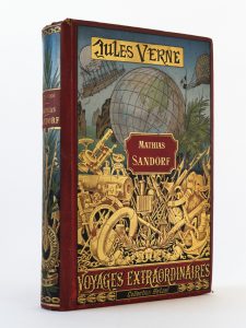 Jules VERNE - Mathias Sandorf. 111 Dessins par Benett et une carte. Paris, Bibliothèque d'éducation et de récréation J. Hetzel et Cie, sans date [1885]. Grand in-8 ; cartonnage polychrome à l'ancre, dos à l'ancre, plats biseautés, second...