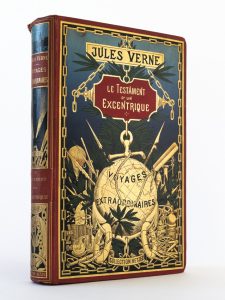 Jules VERNE - Le Testament d'un excentrique. 61 Illustrations par George Roux. 35 vues des États-Unis d'Amérique, carte des États-Unis d'Amérique. Paris, Collection Hetzel, sans date [1899]. Grand in-8 ; cartonnage polychrome au globe doré ou...