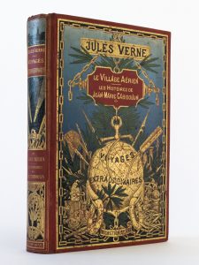 Jules VERNE - Le Village aérien. 38 Dessins par George Roux, 6 grandes chromotypographies, une carte. Les Histoires de Jean-Marie Cabidoulin... Illustrations par George Roux, 6 grandes chromotypographies, une carte. Paris, Collection Hetzel,...