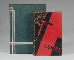 CHASLES (Pierre). La Vie de Lénine. Paris, Les Petits-fils de Plon et Nourrit, s. d. [1929]. In-8°, maroquin noir et veau rouge à décor personnalisé et titre mosaïqué et doré ornant les plats, couverture conservée (Paul Bonnet).