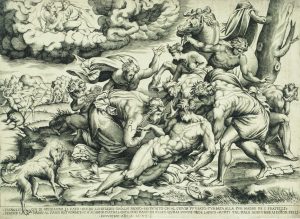 Nicolas BEATRIZET (1507/1515-1570). La Mort de Méléagre, gravé d’après F. SALVIATI. Burin.