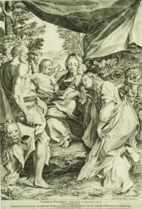 Agostino CARRACHE (1557-1602). La Madone de Saint Jérome, d’après LE CORRÈGE. Eau-forte et burin.