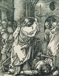 Albrecht DÜRER (1471-1528). Jésus chassant les marchands du temple. Planche de la série de la Petite Passion. Bois.