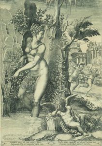 Giorgio GHISI (1512/1520-1582). Vénus et la Rose, gravé d’après L. PENNI. Burin.
