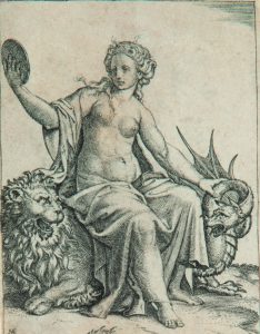 Marc-Antoine RAIMONDI (1480-1527/1534). La Prudence, gravé d’après RAPHAËL. Burin.