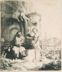 REMBRANDT VAN RIJN (1606-1669). Le Christ et la Samaritaine parmi les ruines. Eau-forte.