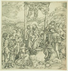 Cristoforo ROBETTA (circa 1462 - circa 1564). L’Adoration des mages, gravé d’après le tableau de F. LIPPI. Burin.