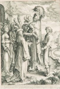 Jan SAENREDAM (1565-1607). David et la tête de Goliath, gravé d’après Lucas de LEYDE. Burin.