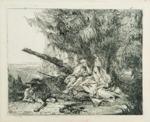 Gian Domenico TIEPOLO (1727-1804). Le Repos de la Sainte famille en Égypte. Planche de la série de La Sainte Famille en Égypte. Eau-forte.
