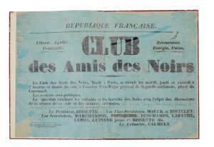 [AFFICHE]. Club des Amis des Noirs. Paris : imprimerie Bonaventure et Ducessois, [1848]. — In-folio oblong, 295 x 425.