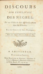 [DUVAL DE SANADON (David)] - Discours sur l'esclavage des nègres, Et sur l'Idée de leur Affranchissement dans les Colonies. Par un Colon de Saint-Domingue. Amsterdam, Paris : Hardouin et Gattey, 1786. — In-8, 190 x 116 : 126 pp., (1 f. blanc),...
